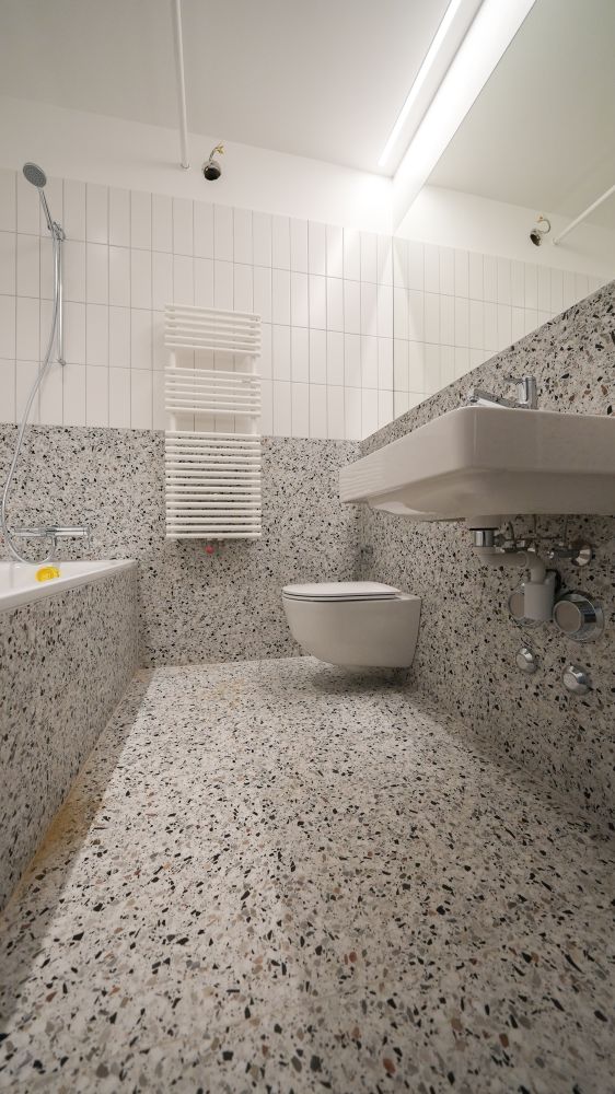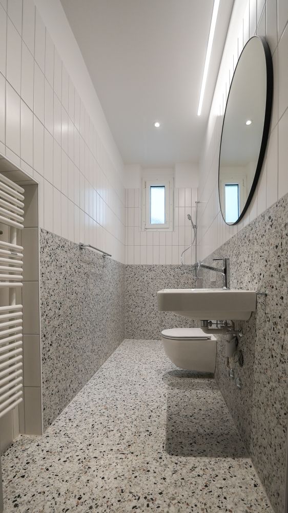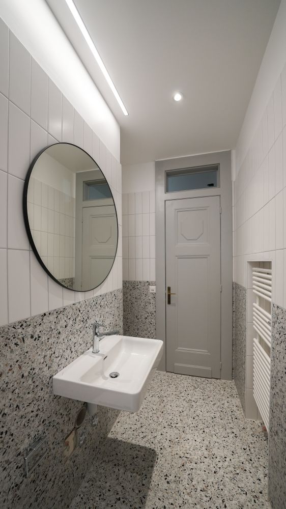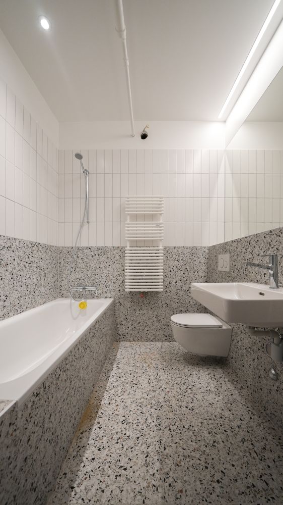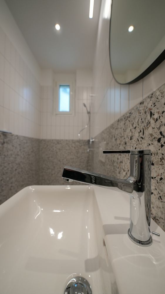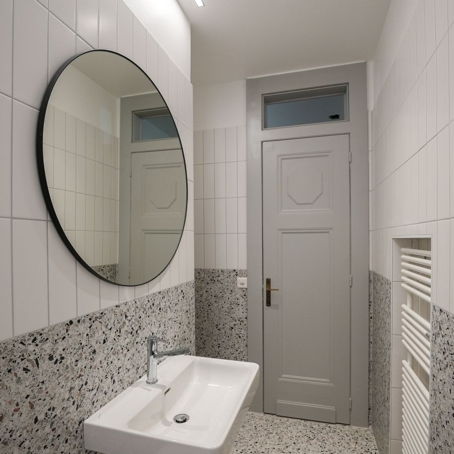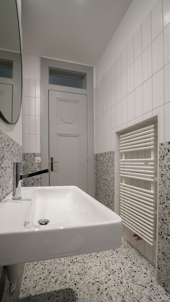 Nous avons procédé à la création des deux salles de bain et des wc séparés ainsi qu’à la modifications de la distribution de chaleur dans les deux logements