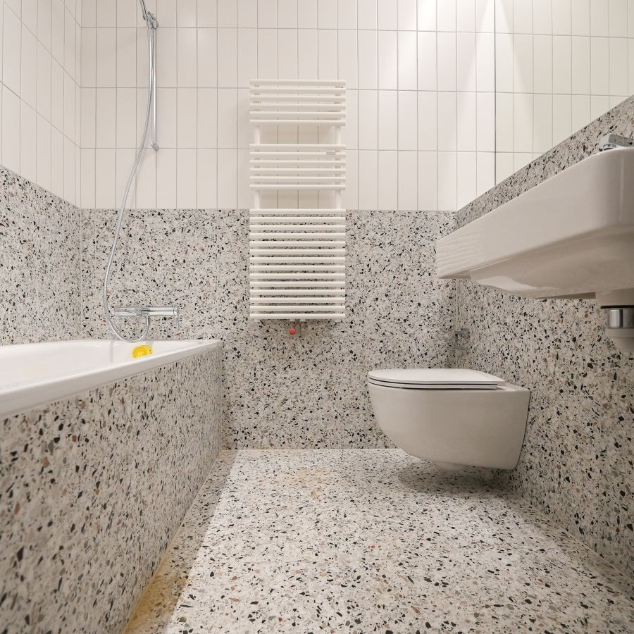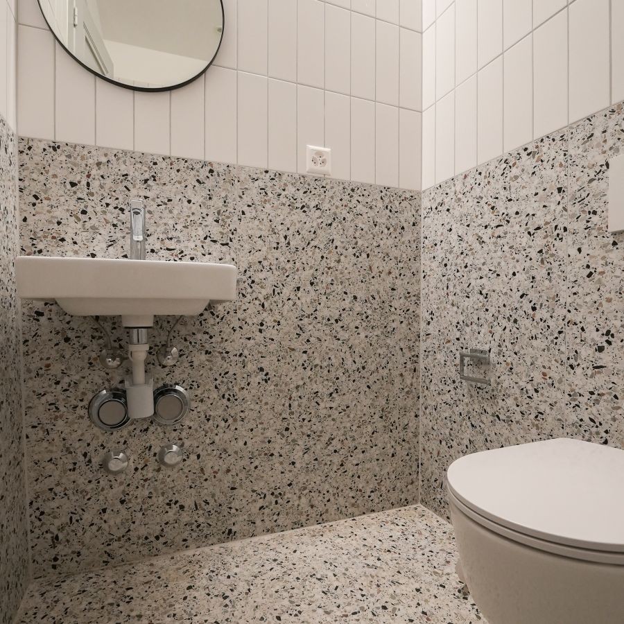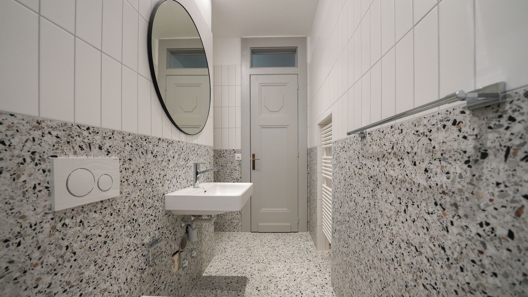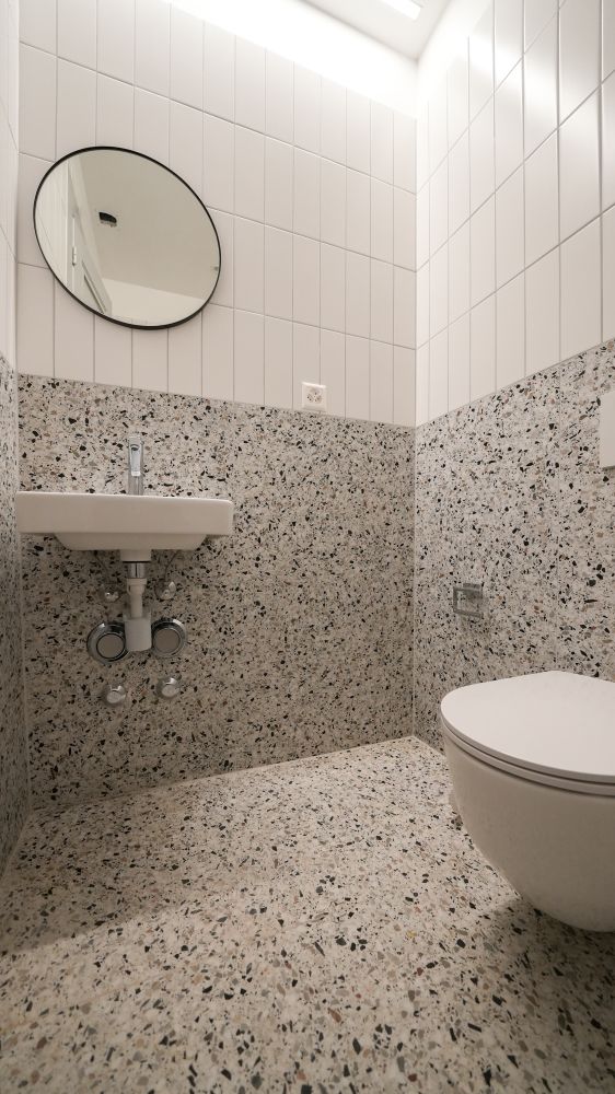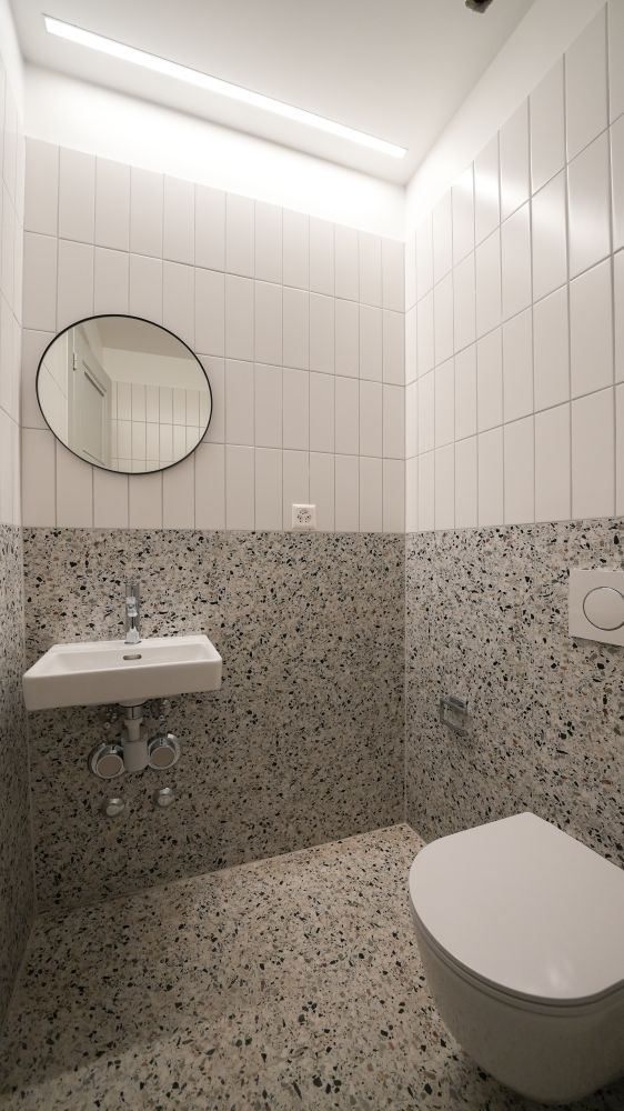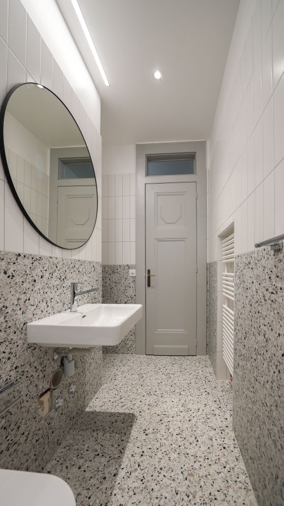 Nous avons procédé à la création des deux salles de bain et des wc séparés ainsi qu’à la modifications de la distribution de chaleur dans les deux logements
